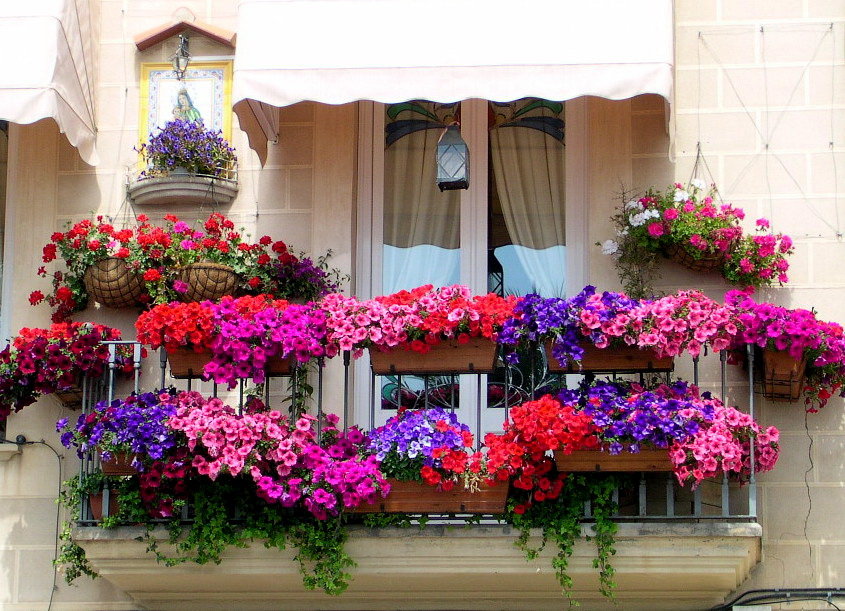 За да се създаде необичайна цъфтяща композиция, често се използват саксии - декоративна саксия. В него е лесно и удобно да се засаждат ампелни цветя. Растенията, които тъкат, са подходящи за саксии. Това ще помогне да се създаде необичаен дизайн, който ще украси горните редове на балкона и терасата. Много често цъфтящите петунии се засаждат в саксии. Тя има много предимства. Първо, цъфти много дълго време: от ранна пролет до късна есен. Между другото, ако петунията се внесе в къща или апартамент през есента, тя може да зарадва с цъфтежа си през зимата. На второ място, има много нюанси. Можете да създадете необичаен състав от него. На трето място, той е непретенциозен в грижите, трябва само да го поливате своевременно.