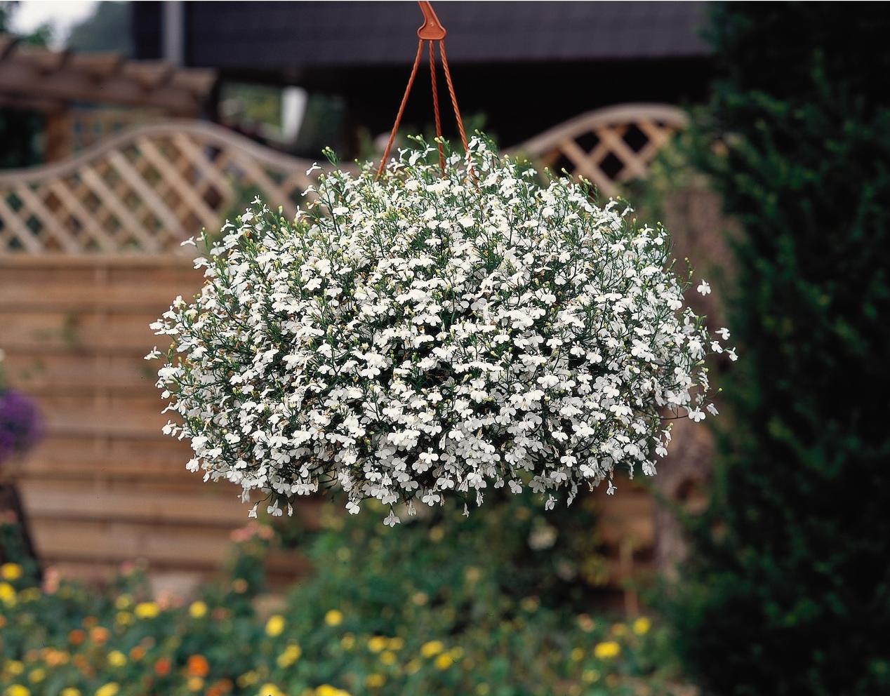 - Бялата каскада цъфти през юни и остава да цъфти до септември. Устойчив на студ. Тази лобелия е каскадно бяла, грижите и отглеждането на която се състоят в обилно поливане и навременно хранене;