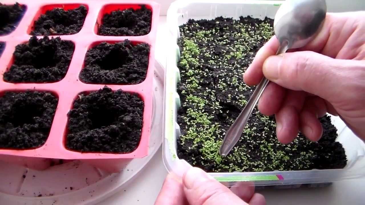 Сеитбата се извършва по време на интензивно увеличаване на слънчевите дни през февруари-март. Тогава разсадът няма да се разтегне поради липса на светлина. Не е необходимо да се поръсват със земя, достатъчно е да се поддържа влагата в почвата, понякога да се проветрява контейнерът.