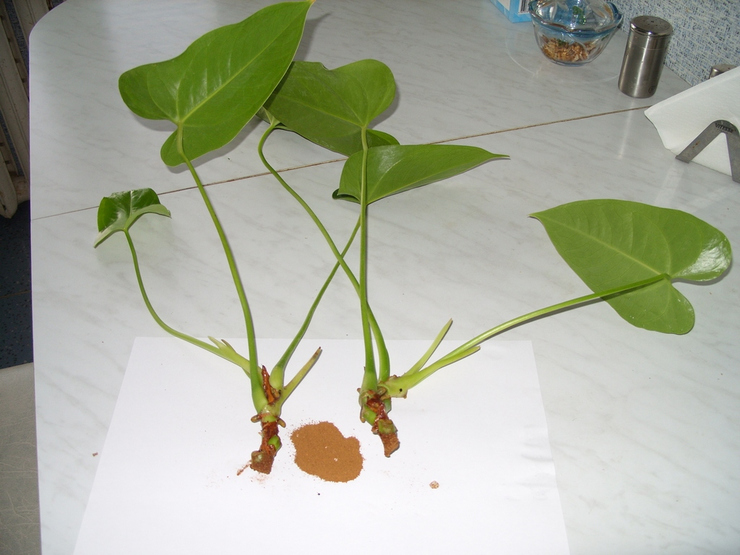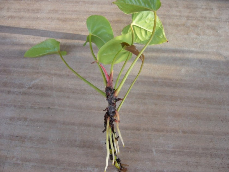 Как можете да засадите антуриум с издънка с корен? Тази процедура трябва да се извършва само по време на трансплантация, през април - август. Кореновата система на майчиното растение и „бебетата“ трябва да бъдат изложени.