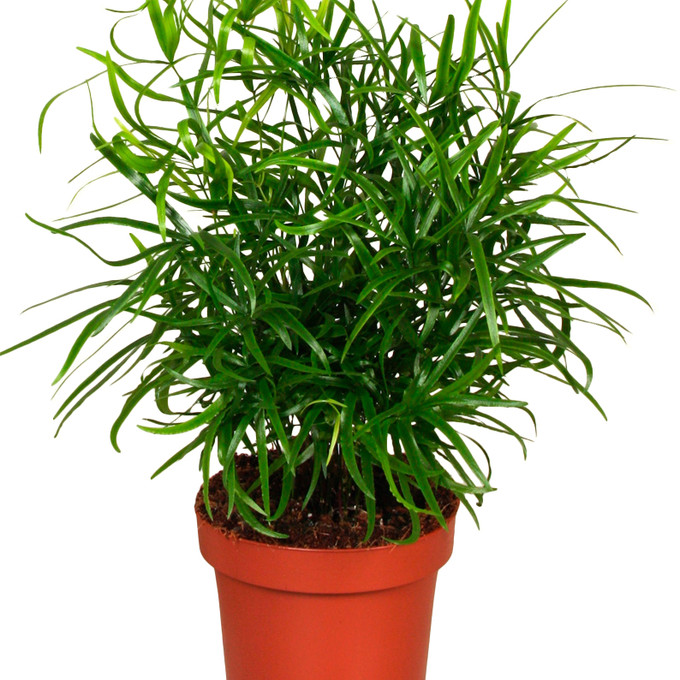 Asparagus plumosus, известен още като пера, има формата на полухраст. Различава се в къдрави издънки. Стъблата голи, гладки. Филокладите растат на гроздове от 3 до 12 бр. във всеки. На външен вид е подобна на папрат. Цъфти с единични цветя с млечен нюанс. Плодът е тъмносин, боядисаното нещо е много трудно да се измие със сока на плода. Те са сферични. Диаметърът им е около 6 мм. Плодът съдържа 3 семена вътре.