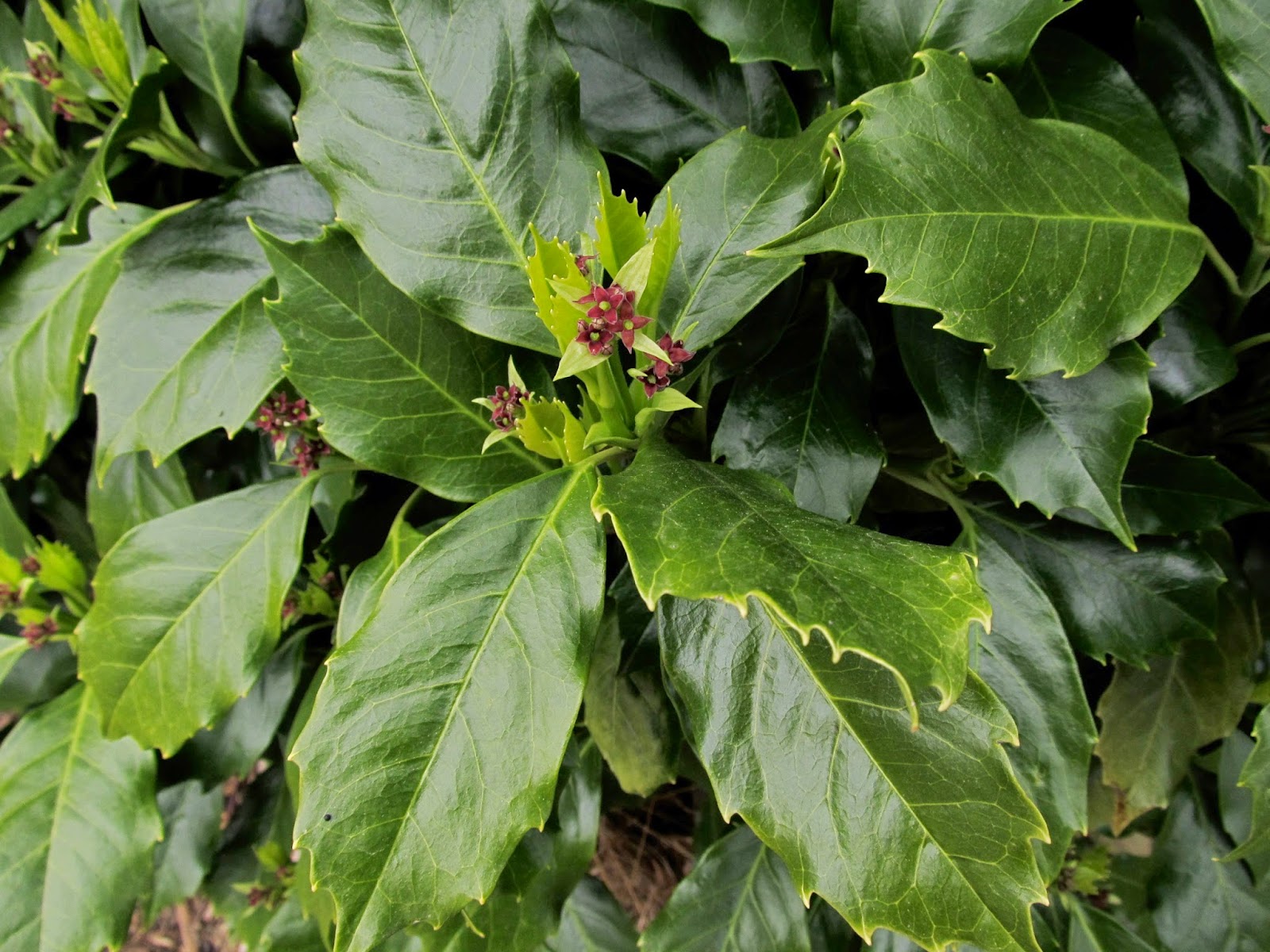 Листата напомня на реколтата Holly, ярко зелена с назъбен ръб.