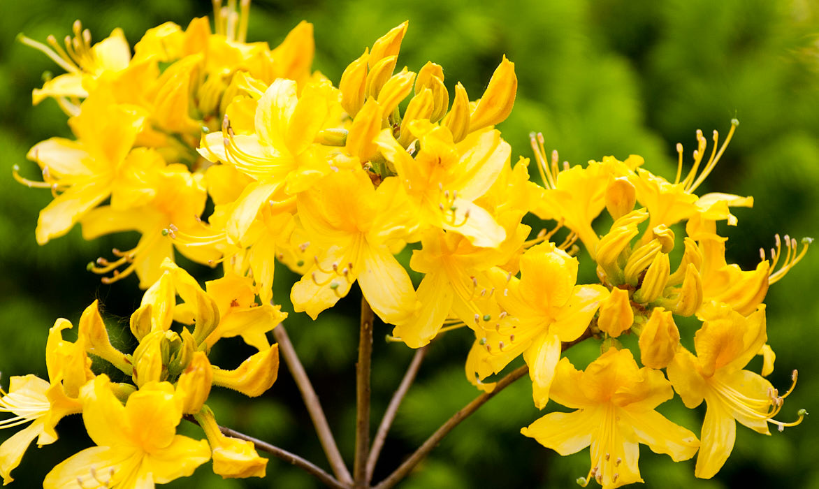 Има и понтийска азалия (рододендрон). Цветовете й са жълти, разреждат неподражаемия сладникав аромат. Тази широколистна азалия е родоначалник на различни хибриди с меки постелки. Растенията трябва да осигурят правилна циркулация на въздуха и почвата, обогатена с минерални компоненти.