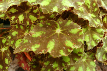 Листата с необичайни ярки цветове са характерни за декоративните сортове зеленина. Цветята на фона на очарователни листа са почти невидими. Такива бегонии се използват за озеленяване, създавайки структурата на градината.