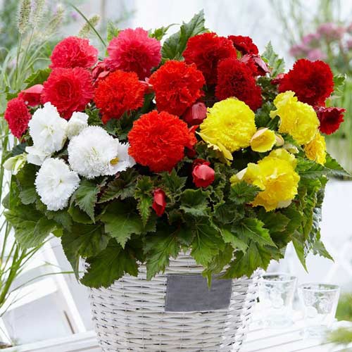Големи двойни женски цветя се събират в съцветия. Също така на съцветията има малки незабележими мъжки цветя. Има много цветове на цветя на бегонии. Ярко бели, червени, оранжеви, коралови, розови, жълти цветя радват с красотата си през цялото лято. А вечно цъфтящата махрова бегония продължава да цъфти до началото на зимата.
