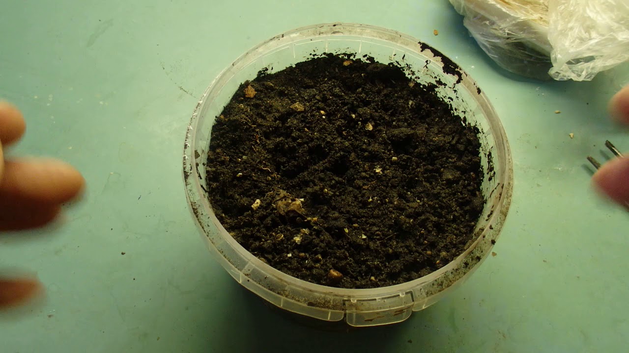 - Изсипете малко дренажно съединение и подходящ субстрат в малка пластмасова тенджера.