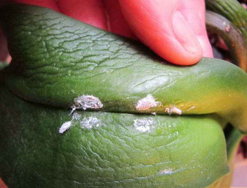 Вредителят, който улавя кралицата на тропическите растения по този начин, се нарича брашнеста брада. Плаката съдържа яйца на паразита. Те са мънички. Самите червеи са дълги не повече от половин сантиметър. Можете да ги видите с просто око.