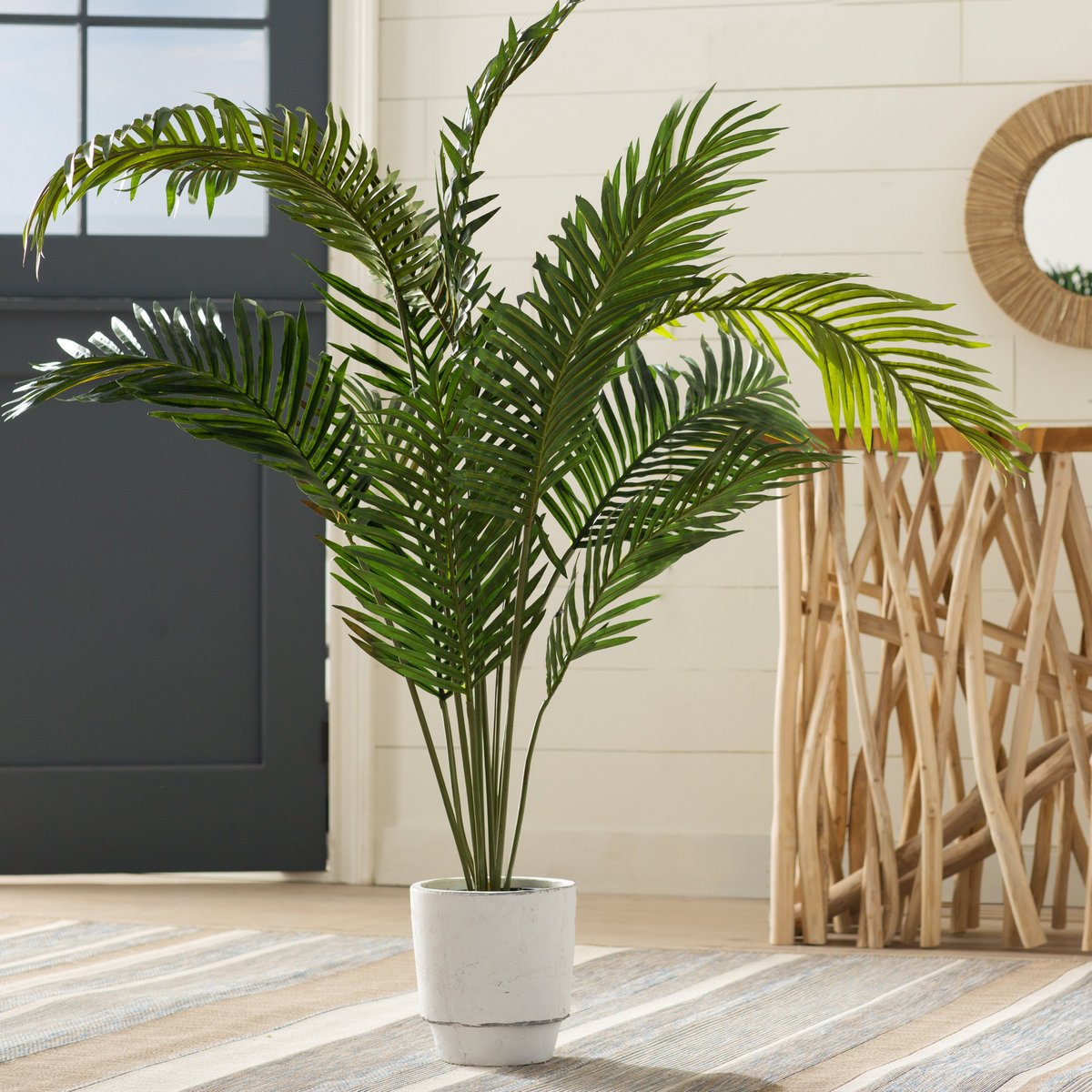 Chrysolidocarpus Areca е вид закрита палма, която има впечатляващ външен вид. Дългите стъбла се превръщат в огромни листа, които приличат на много тесни пера. Има повече от 50 разновидности на растенията и всеки вид може да достигне височина над 5 м. Саксия с буйни палмови храсти ще бъде отлична декорация за работен интериор.