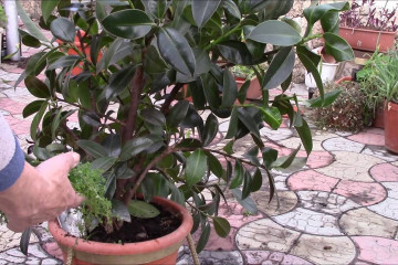 Когато багажникът има необходимата дебелина, вече не е необходимо да се трансплантира. Сега трябва само да извършите резитба и оформяне на короната. Подрязването се извършва само през пролетта. През есента и зимата не се извършва, тъй като жизнените процеси на растението се забавят и то се подготвя за период на покой. Бързо растящите сортове фикус се отрязват на две до четири листа, след като на издънката растат 6 до 8 нови листа. Подрязването започва отдолу, постепенно се движи нагоре, до короната.