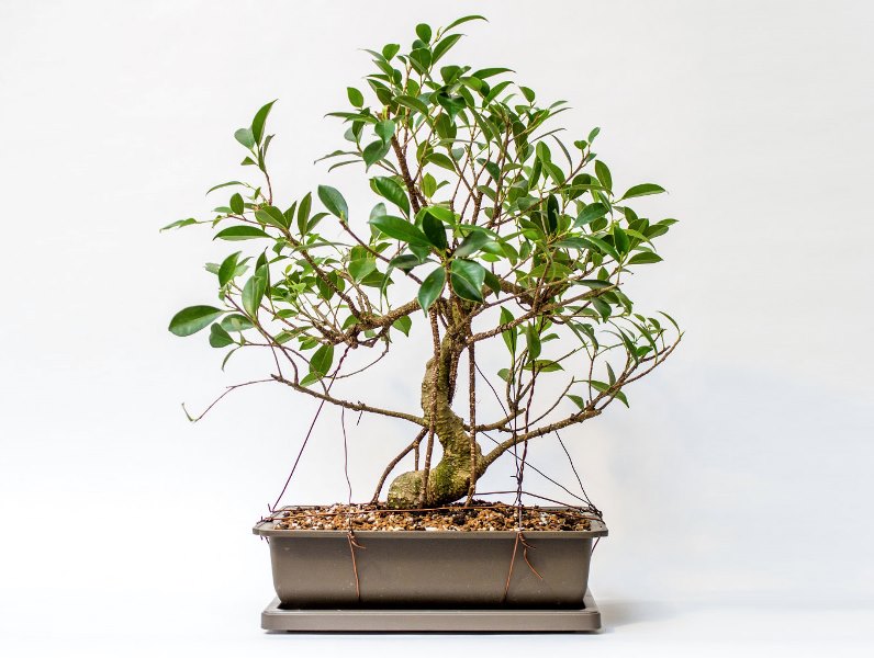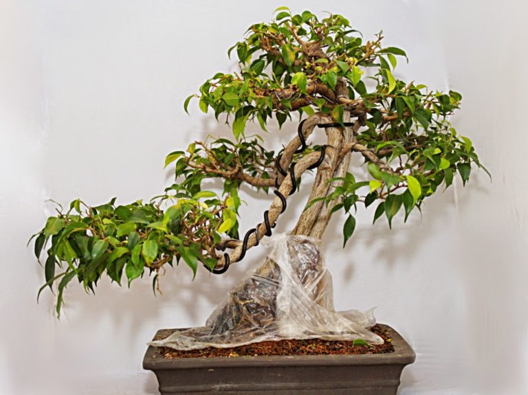 „Bon-sai“ е японска дума, която означава „поставете в контейнер“. Целта на развъждането на бонсай е да отгледа растение джудже, подобно на истинското. Бонсайските дървета не са генетично миниатюрни растения; практически всеки вид дърво може да се отглежда по този начин. Най-популярните джуджета са фикусите. Те са доста непретенциозни в грижите, растат бързо, имат разклонени корени, красива необичайна кора, малки листа и впечатляващ багажник. Бонсай от фикус Бенджамина и бонсай от фикус женшен е особено ценен.
