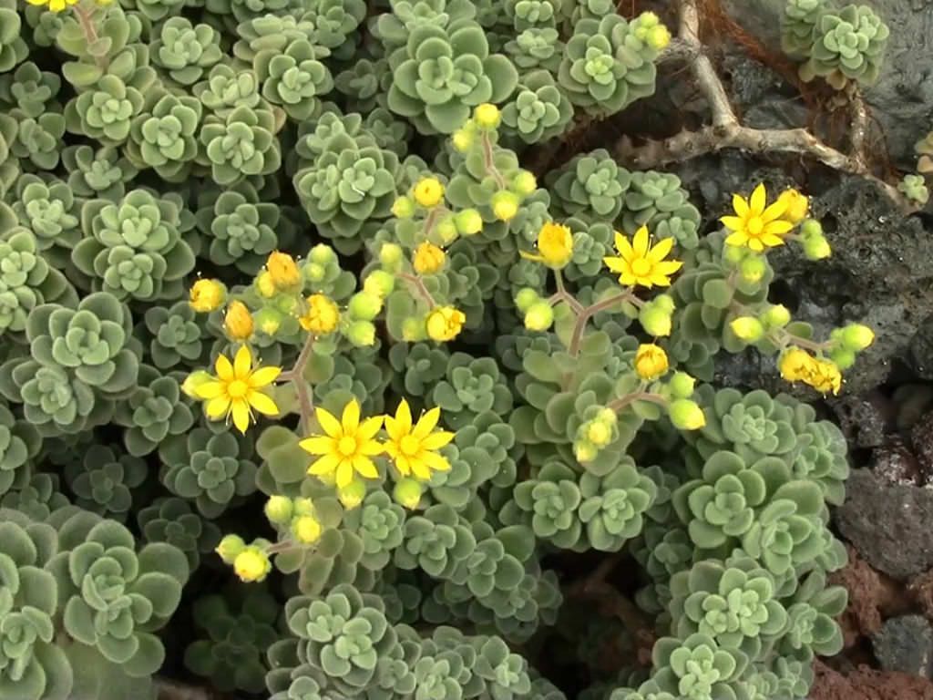 Aichryson laxum е малък сочен храст с квадратна форма: височина и диаметър могат да достигнат 40 cm.