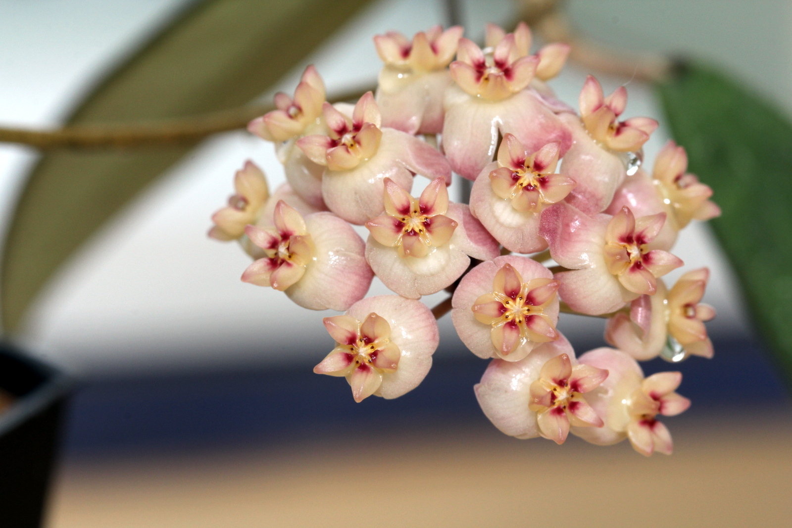 Karnosa е восъчен бръшлян, който е придобил популярност с цъфтежа си. Малки пъпки, бледорозови или чисто бели. Те имат силен, но приятен аромат. Самата лиана е доста непретенциозна в грижите, но за нейния цъфтеж трябва да бъдат изпълнени няколко условия: