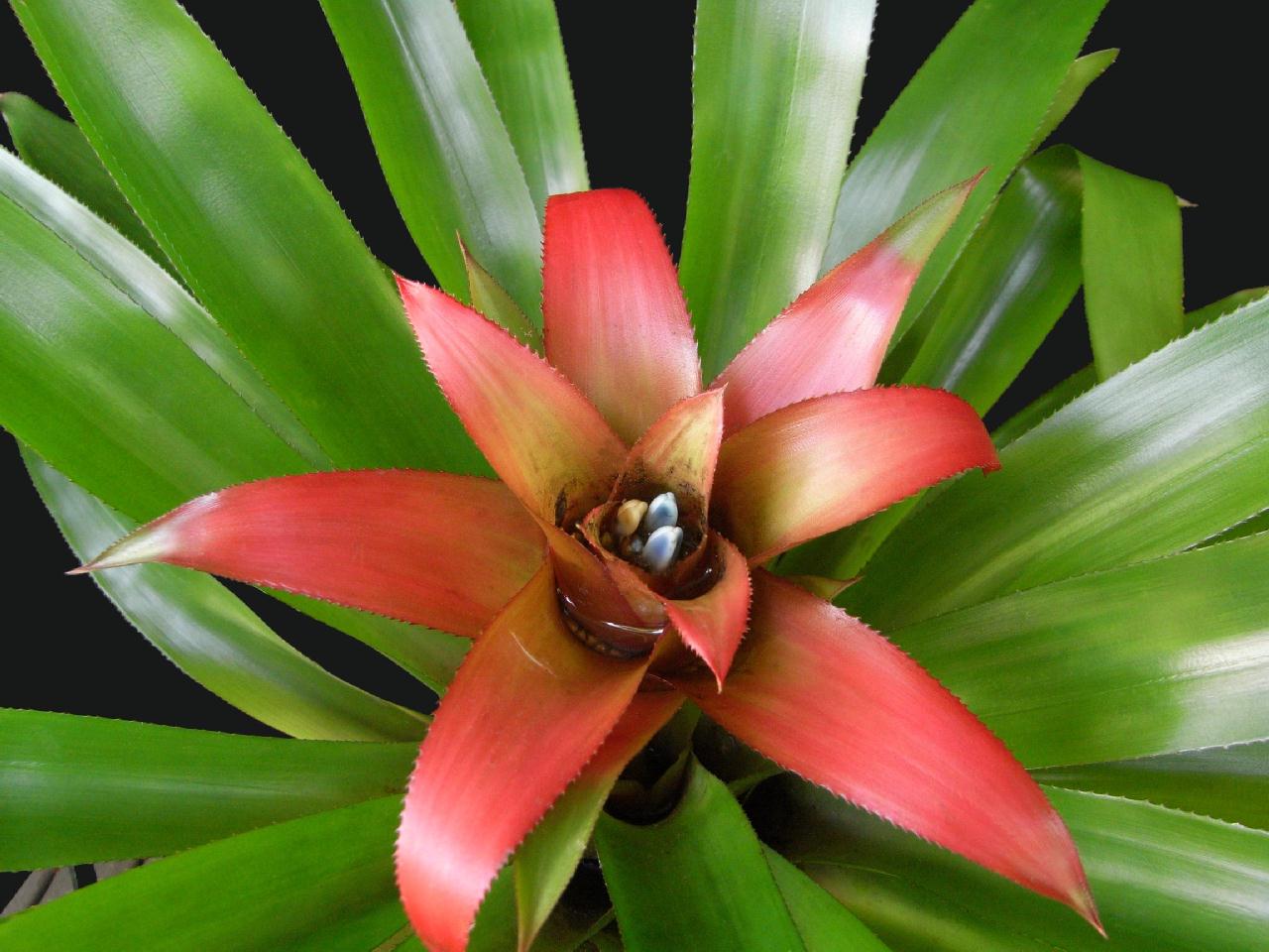 Домашно растение, родено в тропиците. Принадлежи към семейство Bromeliad. Цветето се характеризира с липсата на стъбло. Остри зелени листа произхождат директно от основата.В горната част на растението се появяват червени листни плочи по време на периода на цъфтеж.