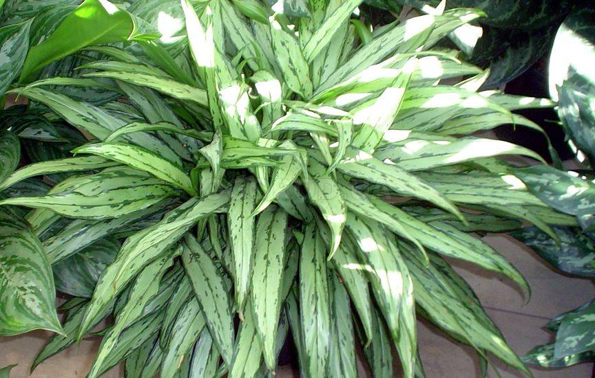 Популярните сортове включват Aglaonema Marantifolium Blum. В светлите и тъмни области на листата ясно се вижда синкав оттенък.