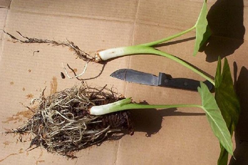 При разделяне на коренището и прибиране на резници от стъблата, разрезът или коренищата трябва да се обработят с наситен въглен и да се оставят за 2-3 часа. След това засадете разсада (стъблото) в субстрат от торф и пясък, покрийте с филм (стъкло), поставете при температура 22-24 градуса, редовно проветрявайте и поливайте.