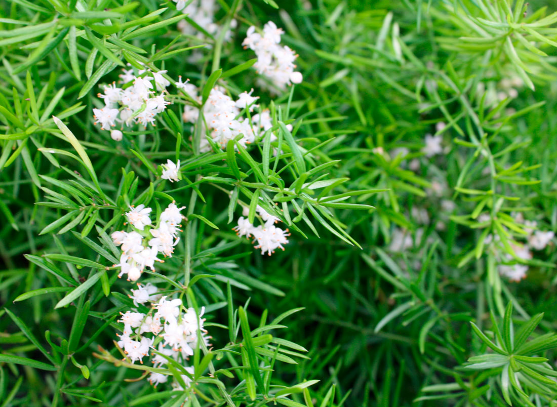 По време на цъфтежа клоните са покрити с обилни малки цветя, на мястото на които след това се образуват червени плодове. Във всяко узрява по едно семе.