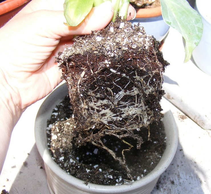 Преди размножаването, цветната грудка трябва да се изсуши. При рязането е важно местоположението на всеки лоб на корена заедно с пъпките и листата. Мястото на рязане се намазва с брилянтно зелено или се поръсва с активен въглен, след което се отделя време за сушене (2 дни).
