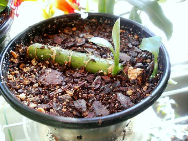 - Когато от среза се появят малки корени, стъблото се отрязва напълно и се засажда в субстрата.