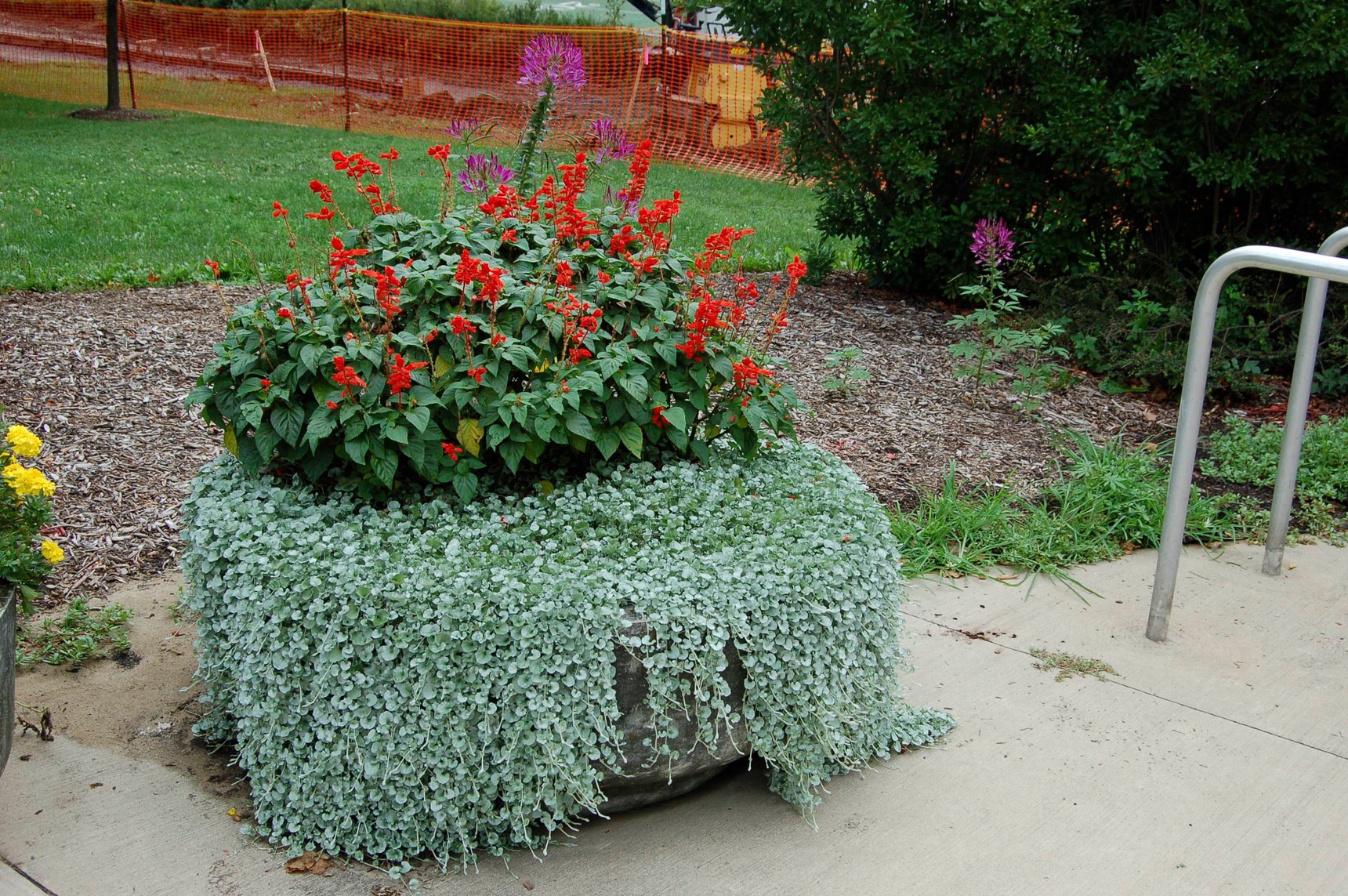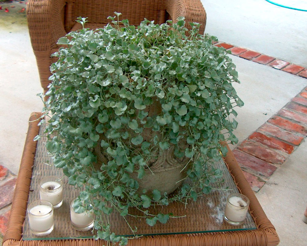 Ландшафтните дизайнери често използват растението дихондра за декорация: