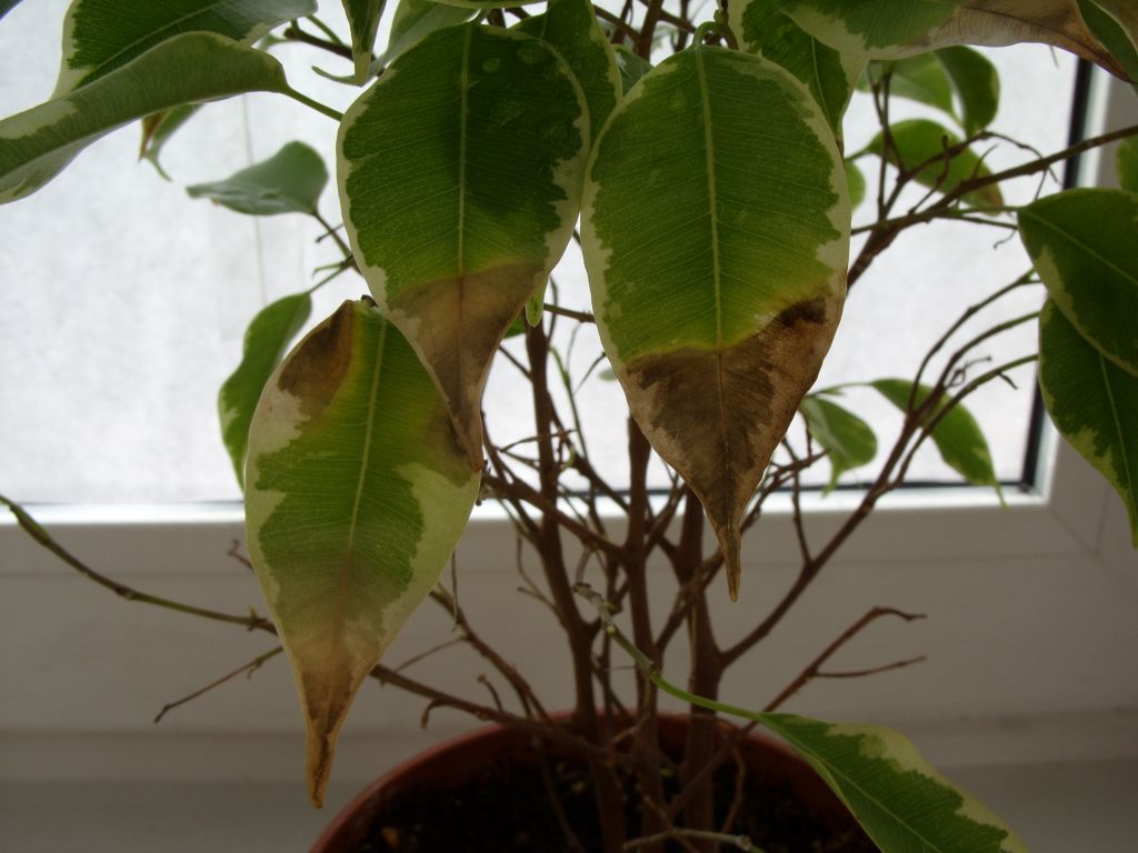 Ако листата на растението фикус станат тъмни и влажни, това може да е признак на гниене на корените. Най-вероятно фикусът е бил подгизнал. Излишното поливане трябва да бъде премахнато, но в повечето случаи не е възможно да се спаси храстът.