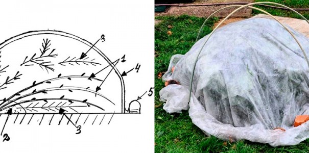 - Ямата е покрита със земя, около нея се извършва мулчиране с торф, компост или хумус. Покрийте с фолио.