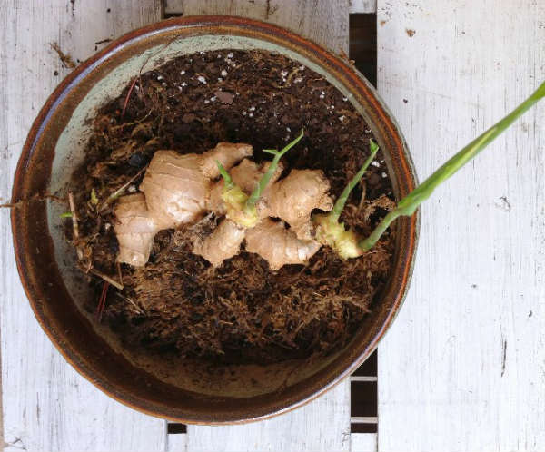 Можете да отглеждате джинджифил от закупен в магазина корен. Основното е, че е свежо и твърдо. Пъпките се виждат в корена, което ще помогне на ново растение да се появи. За да ги събудите, трябва да поставите посадъчния материал във водата за няколко часа.