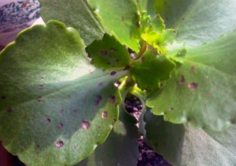 Най-честият проблем на каланхое е късната болест.С развитието на патологията на листата се появяват кафяви петна и плака. Заразяването може да се дължи на излишната влага в почвата или застоялия въздух в помещението.