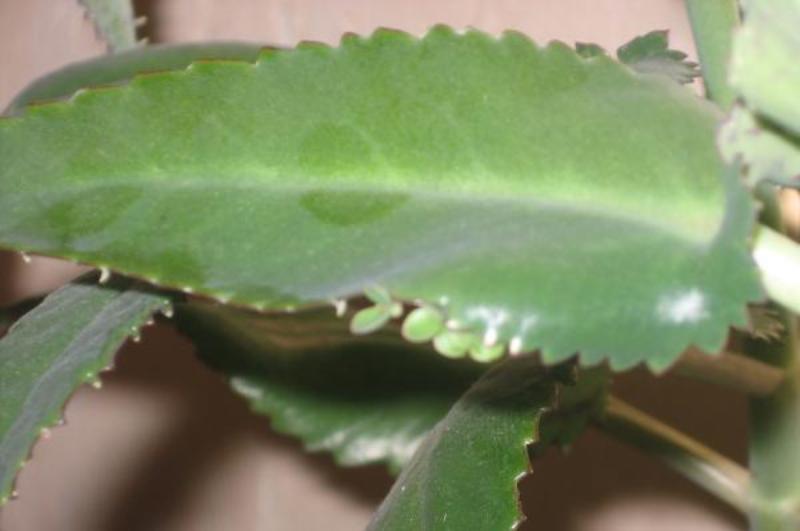 В горещите месеци е полезно да се извършва хигиеничен душ: листата се напръскват от фина спрей бутилка и веднага след това избършете капките вода с прах с хартиена салфетка. Не е необходимо да се избърсва след пръскане само онези видове каланхое, при които листата са надолу, а видовете с ресни изобщо не се нуждаят от пръскане.