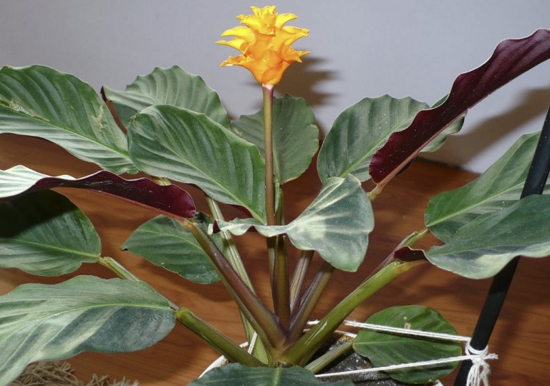 Цветята на Calathea имат ярко жълт, наситен оранжев цвят. Те са с малки размери, но необичайният им вид добавя декоративност към растението.