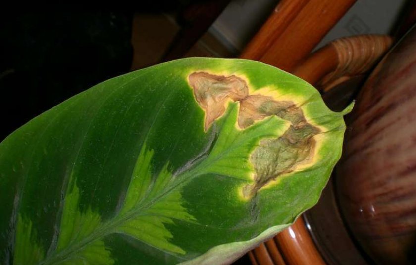 Липсата на влага засяга листата на растението. Ако върховете на листните плочи започнат да изсъхват, това означава, че въздухът и почвата трябва да бъдат навлажнени.