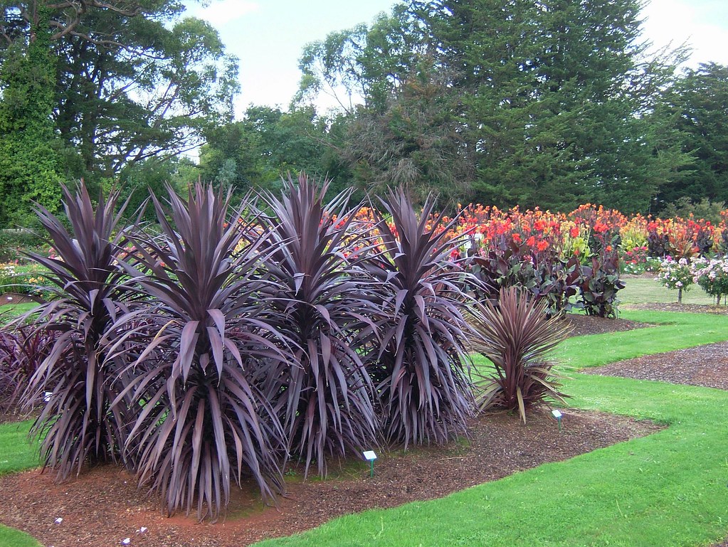 Кордилина южна - родом от Нова Зеландия, у дома достига 15 м. Местните хора ядат млади листа като зеленчук, наричайки растението "зелево дърво".