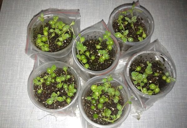 Градинарите не препоръчват размножаването на земната трева със семена, тъй като те рядко са пресни в магазините. Ако те все пак са успели да бъдат закупени, тогава няколко семена, предварително навлажнени с вода, се засяват в една саксия. Това се прави, за да се появят кълнове върху тях. Поливането трябва да се извършва само с пулверизатор, за да не наводни разсад.