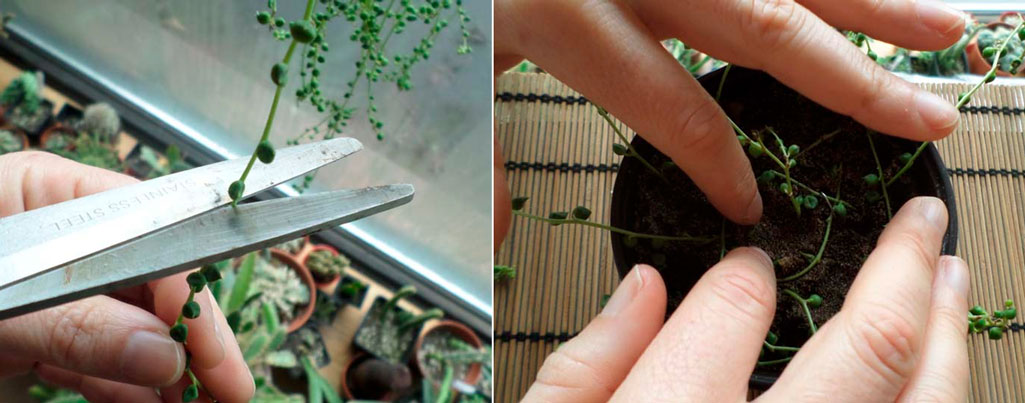 Под резници имаме предвид малки части от стъблото, дълги около 9 см. Няколко долни листа се отстраняват от тях и се оставят за една нощ на открито. През това време стъблото е леко изсушено и се засажда в специално приготвена пясъчна почвена смес. Желателно е в него да няма плевели. Можете да контролирате климата, в който ще бъдат разположени резниците, и да ги премествате при необходимост. В една саксия се засаждат няколко стъбла. Трансплантацията се извършва след вкореняване.