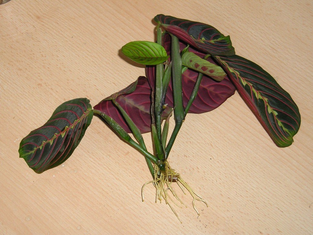 Най-добрият начин за размножаване на молитвено цвете е чрез резници. Удължените издънки се изрязват с нож, спускат се във вода и се изчакват образуването на корени. Водата трябва да се утаи и да е със стайна температура. Веднага щом се появи кореновата система, изрезката се трансплантира в земята и се покрива с полиетилен, за да се създаде парников ефект.