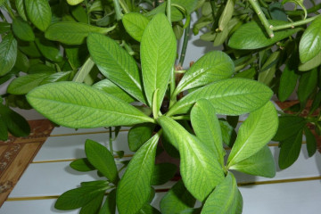 Къдрав вечнозелен храст, който расте до 4 метра! Клоните са тънки, голи, с няколко листа само в самия връх.