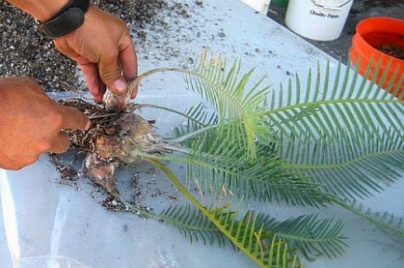 Ако почвата е твърде влажна, кореновата система на цветето може да започне да гние. За да се отървете от проблема, растението трябва да се извади от саксията, да се отрежат засегнатите от гниене части, да се напръска цветето с фунгицид. След това цикасите се трансплантират в дезинфекцирана саксия с нова почва.