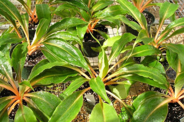 Цветът има голямо апикално съцветие. Бушът расте до 1,5 метра. Листата са дълги, тъмнозелени с лъскава повърхност.