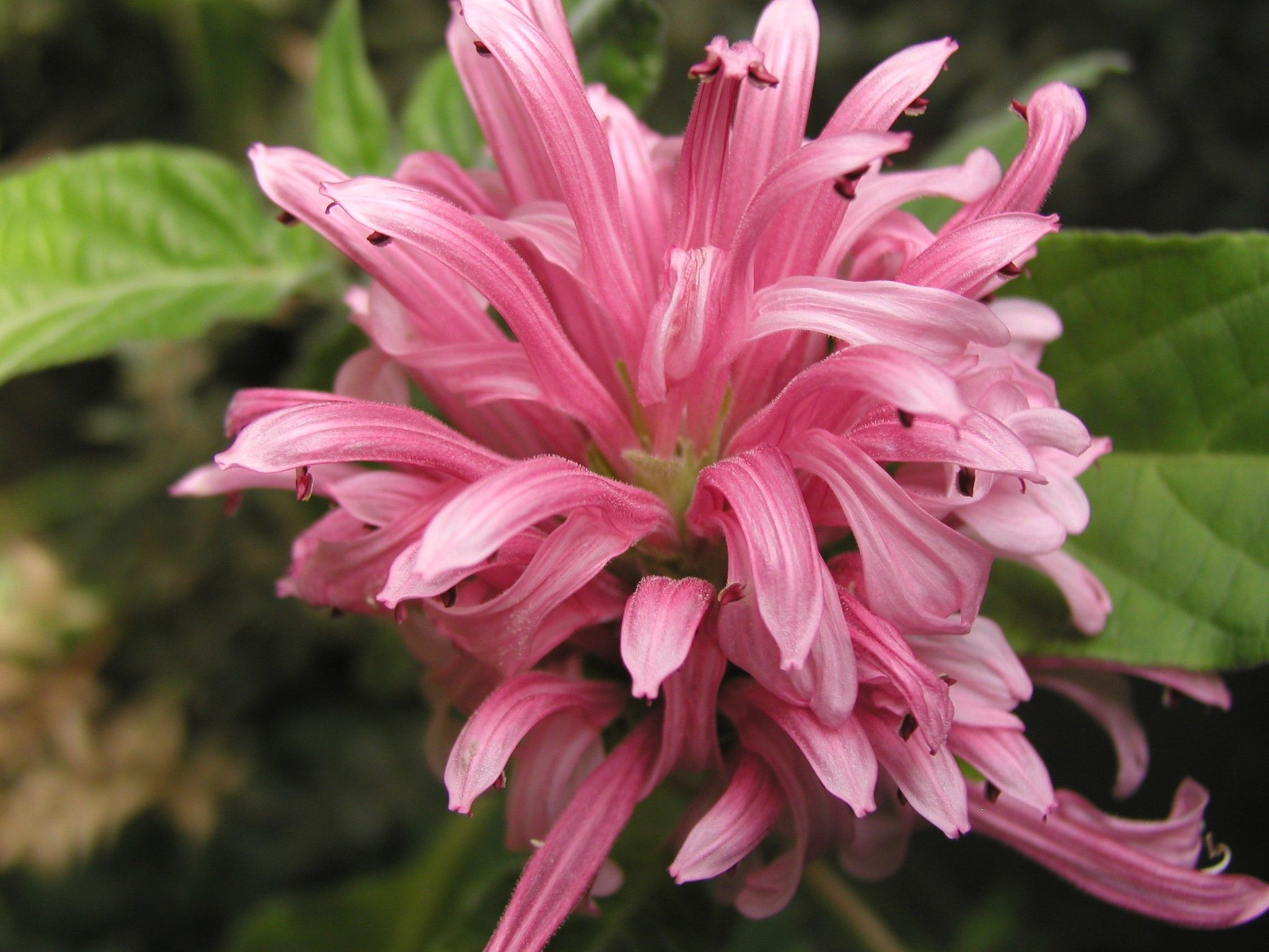 Разклонено растение с класовидни съцветия. Те се състоят от тръбни цветя със снежнобял нюанс, които са заобиколени от розови прицветници.