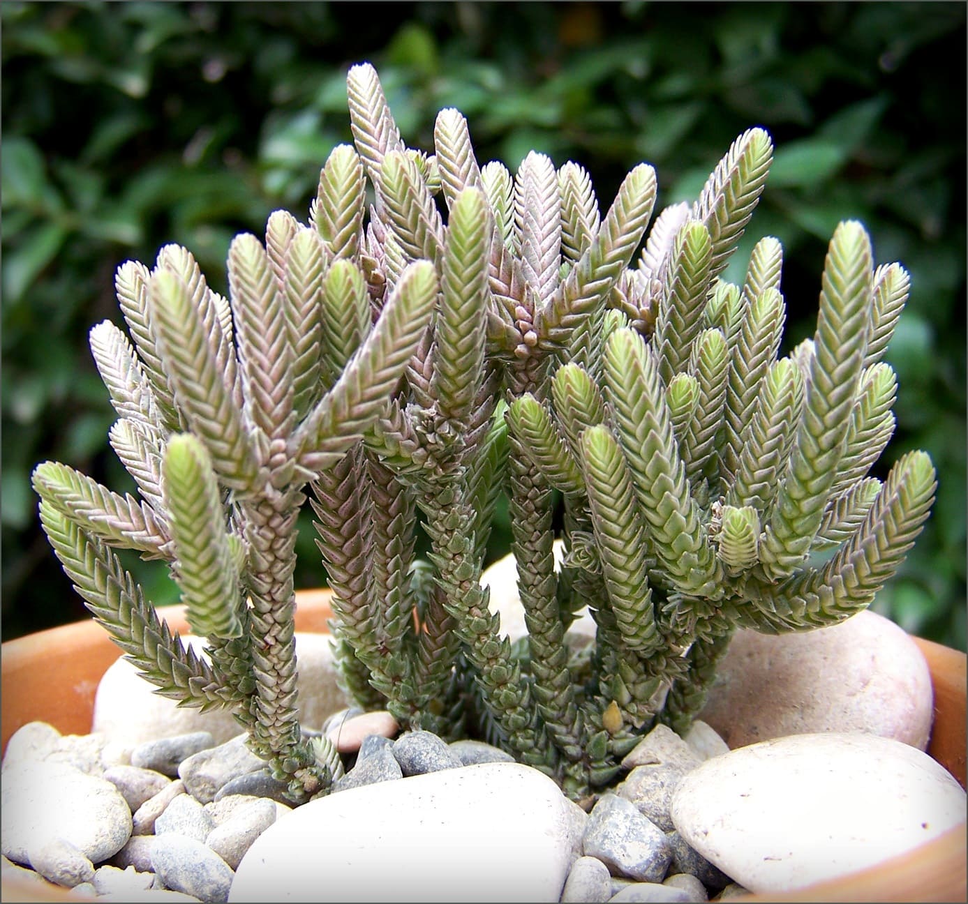 Тученицата Crassula е разновидност на предишното растение.Стволът и клоните му покриват въздушни корени. Първоначално те са бели на цвят, постепенно потъмняват. Цъфтежът за такова растение е много рядък, това се случва в зряла възраст. Цветята са с малки размери, събрани в метличесто съцветие. Венчелистчетата са бели и розови.