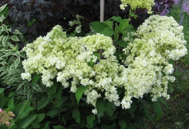 Друг отличен сорт хортензия в Урал за отглеждане в градината е Кюшу. Това е триметров храст с разкошна корона. Съцветията на сорта са бели, които придобиват светлорозов оттенък по-близо до есента.