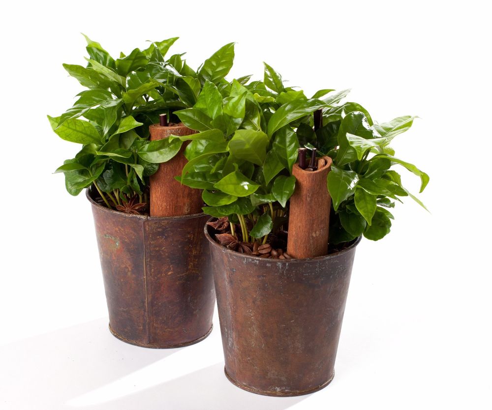 Изборът на саксията се определя от централния корен на кафевото дърво. Размерът на контейнера е поне 30% по-голям от разсада за растението, за да се получат полезни елементи в достатъчен обем.