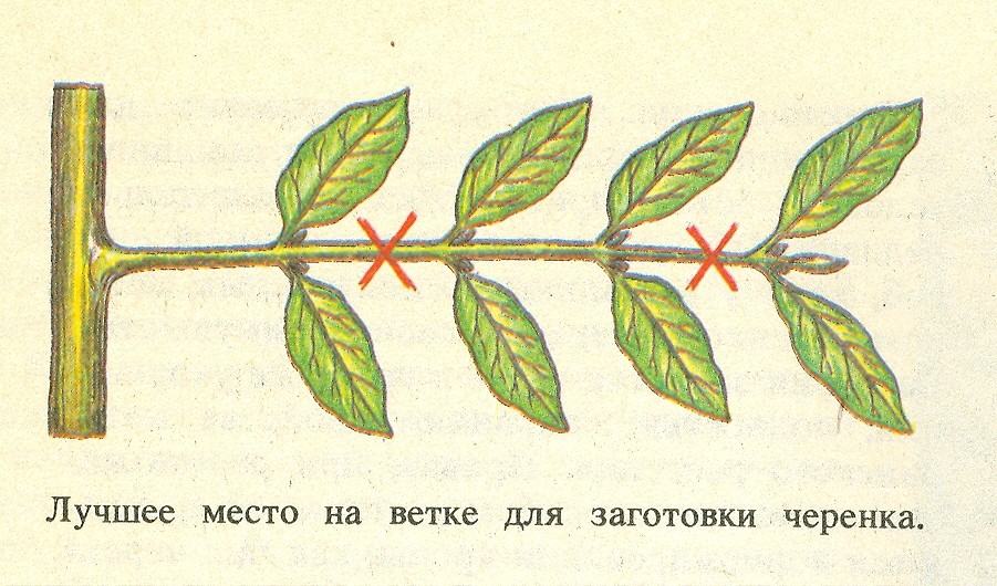 - 10-15 см резници се изрязват косо от култура за възрастни;