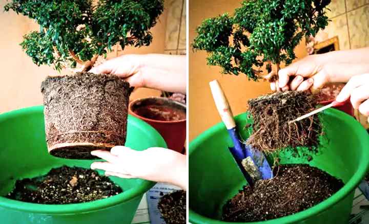 - Подрежете внимателно заплетените и сухи корени.
