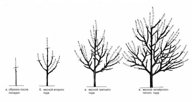 - Всички клони се укрепват през летните месеци и до следващия сезон дървото цъфти и дава плодове, доколкото е възможно.