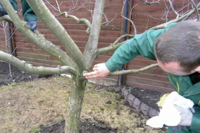 За да се предотврати сериозно увреждане на дървото, се препоръчва да се подрязват клоните от двете страни наведнъж. Всички издънки трябва да бъдат премахнати, с изключение на 2-те най-силни.