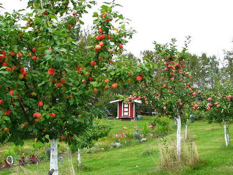 - високи и средни ябълкови дървета - на всеки 4 м;