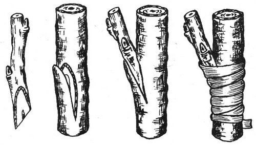 Присаждане в цепнатината, градинарите използват този метод, за да обновят градините си. Върхът се отрязва от дървото, основата се отрязва. В слота се вмъква дръжка от издънки. Времето за ваксинация е пролетта.