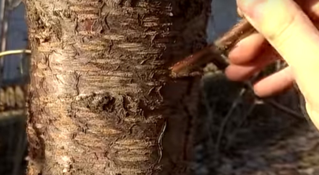 Същността на такава инокулация се свежда до пробиване на дупка в голямо дърво със свредло, с диаметър 8 mm до дълбочина 4-5 см. Взема се подходящ клон със същия диаметър с четири пъпки. В него кората се почиства от ръба, който ще се вкара в пробития отвор.