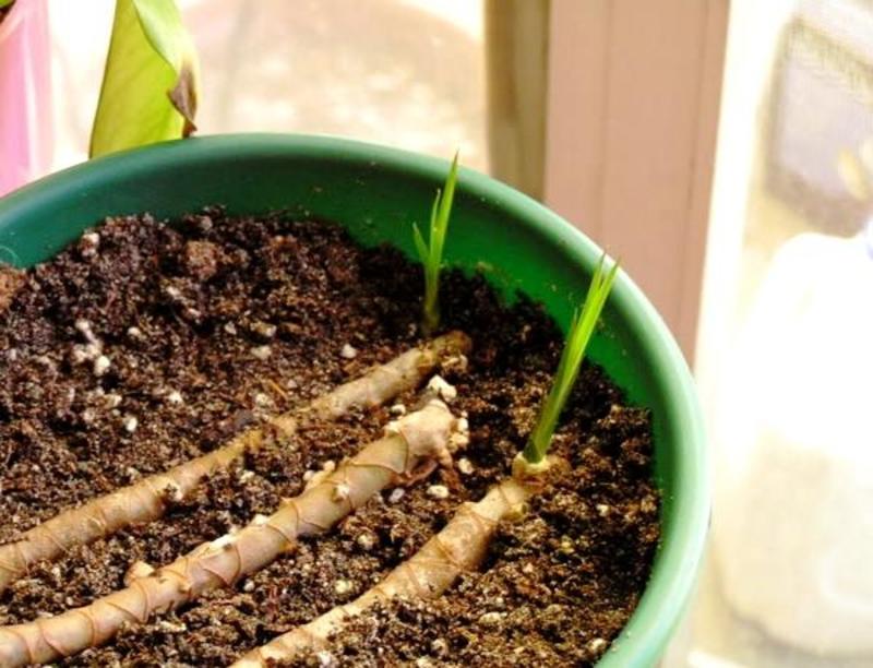 Как може да се вкорени драцената? На места с порязвания, отлепване на тъканта, наличие на мръсотия или неравности са неприемливи. Процесът на вкореняване се извършва в парникови условия, издънките могат да бъдат разположени както вертикално, така и хоризонтално. В последния случай те леко се притискат във влажната почва. Ако по време на вкореняването на апикалните резници се образуват само корени, тогава по време на размножаването на драцената страничните пъпки се събуждат със стъблени резници и дават нови издънки. Кореновата система е в състояние да се формира за 1,5 месеца, кълновете се появяват след още 1 месец.