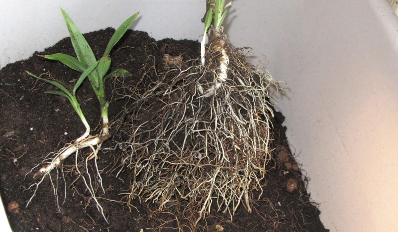 Точките на рязане се обработват с натрошен въглен или активен въглен. Здравата коренова система трябва да се третира с фунгицид, за да се предотврати разпространението на кореновото гниене и да се запази цветето.